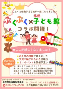 これまでそれぞれに開催していた「ぷくぷく」と「移動子ども館」が、このたびコラボし開催することになりました!それぞれに行っていた活動を一つにすることで、新しいかたちの居場所として遊びやふれあいの幅がさらに広がります。